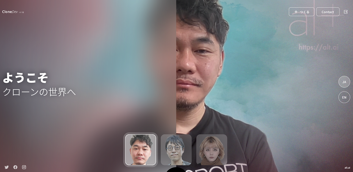 本プラットフォームは、オルツのデータ保管システム「alt ID(オルツID)」で保管されるライフログのデータと、言語処理や画像生成などの技術を組み合わせて一人ひとりの人間の個性を導き出すことで、その人の意思を汲んだ対話が可能なアウトプットを生成します。α版では、当社のCEOである米倉千貴に加え、国内外で活躍する経済学者・データ科学者 成田悠輔氏、アーティスト・シンガーソングライターの静電場 朔氏の3名のクローンをトライアルすることができます。また、「オルツカンファレンス2023 ー生か死か 生成AIの齎す破壊と創造ー」では、デジタルクローンと本人たちの対談をご覧いただけます。