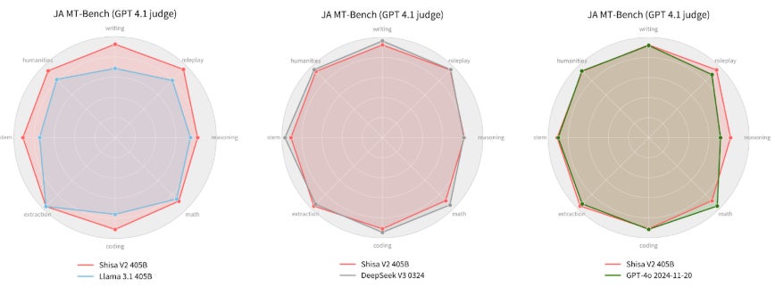 Shisa.AI(本社:東京都港区)は、2025年6月3日に、日本国内で開発されたモデルとして過去最高水準の日本語性能を実現した多言語対応LLM『Llama 3.1 Shisa V2 405B』※を開発し、オープンソースで公開しました。本モデルは、GPT-4を超えるだけでなく、GPT-4oやDeepSeek-V3といった最先端モデルと主要な日本語ベンチマークで同等の性能を示しており、日本のAI研究が世界レベルで高い競争力を持つことを示しています。