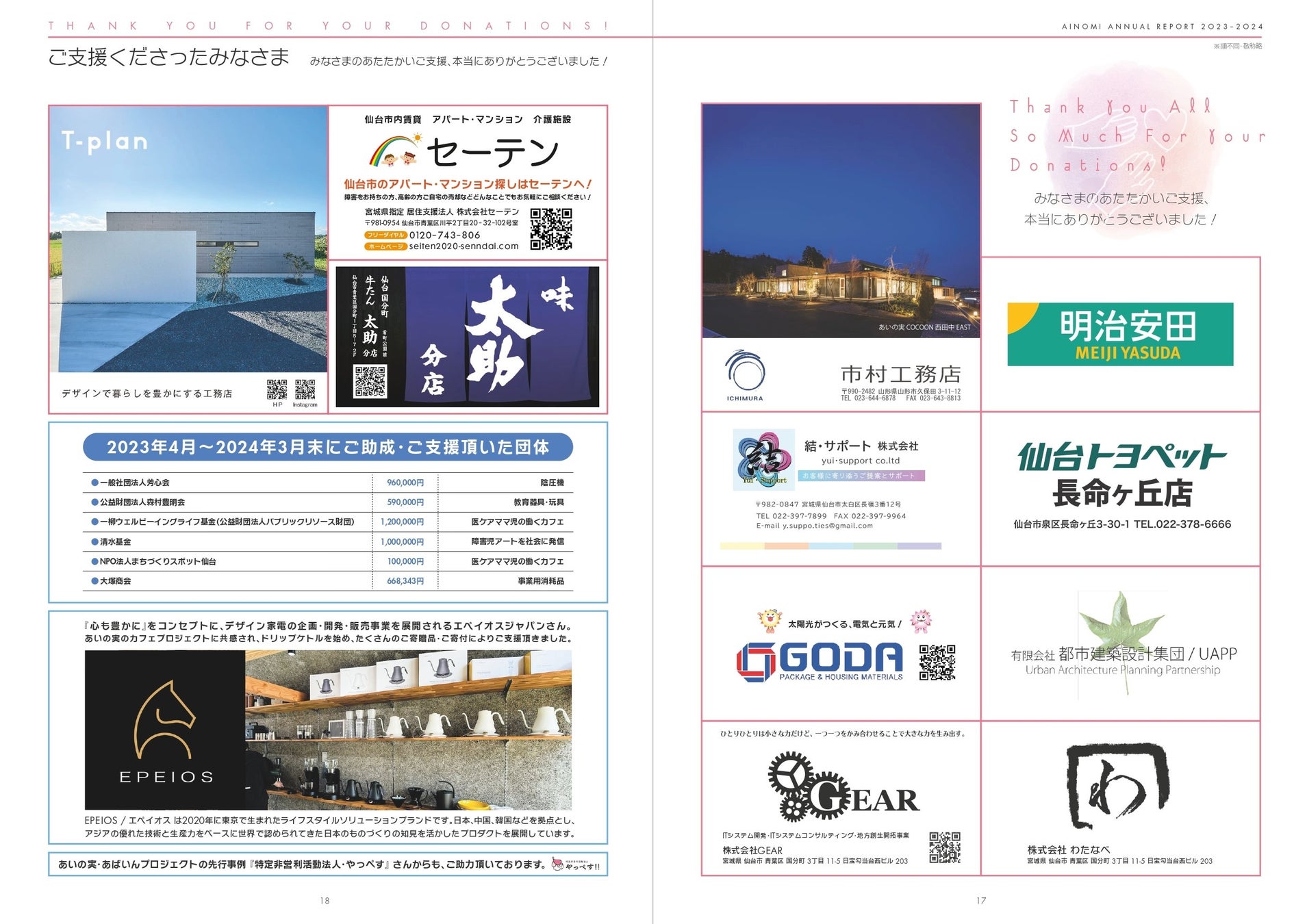 社会福祉法人あいの実(宮城県仙台市泉区実沢中山北100-2/理事長:乾祐子)は、「年次報告書(2023ー2024)/sympathy」を発行しました。