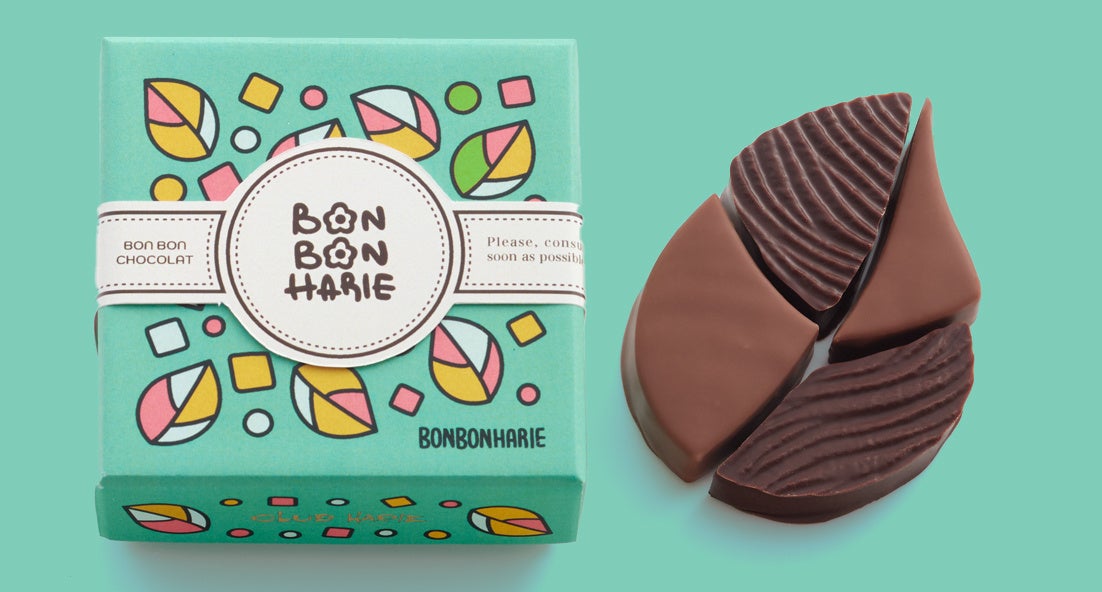 BON BON HARIEで展開するボンボンショコラの形やパッケージデザインを⼿掛けたのはイラストレーター くぜさえさん。