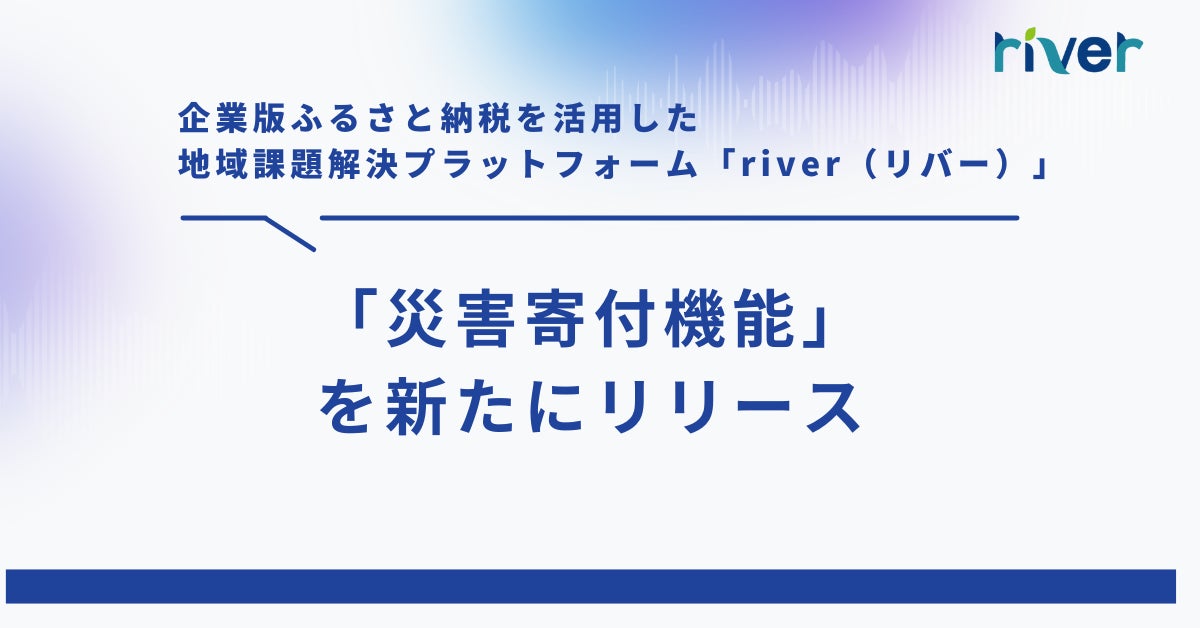 企業版ふるさと納税を活用した地域課題解決プラットフォーム「river」、「災害寄付機能」を新たに実装