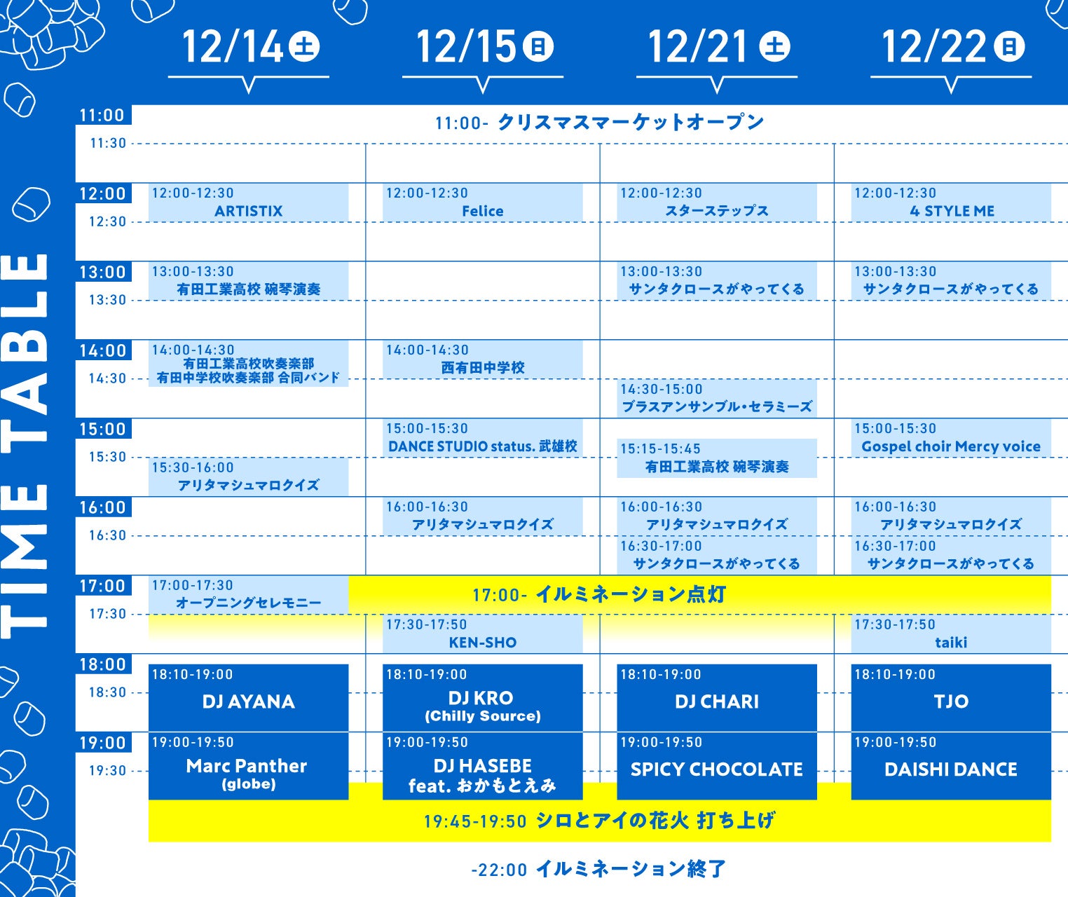 「アリタ・マシュマロ・クリスマス 2024」ステージイベント ※出演時間順