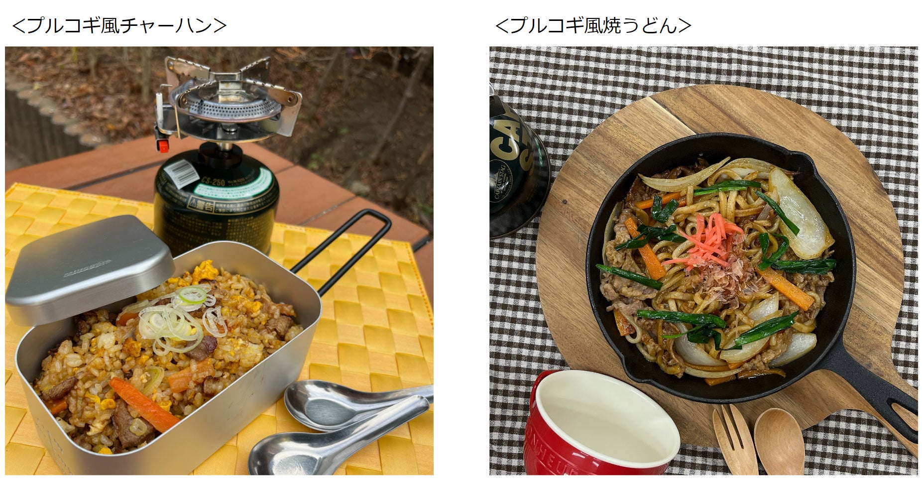 「麻布十番 山本牛臓監修 プルコギの素」は1人前の小袋調味液が4袋入っており、食シーンに合わせて1人前から4人前まで調整して楽しめます。メニューがパターン化してしまいがちなアウトドアシーンでの料理において、調味料や食材で荷物が増えてしまう場合でも、本品は小袋タイプなので荷物も増やさず常温で持ち運びができます。また小袋を韓国調理ソースとしてお使いいただくことで多彩なアレンジも可能です。「プルコギ風チャーハン」や「プルコギ風焼うどん」などのアレンジレシピにご活用いただき、BBQやアウトドアでぜひお楽しみください。
