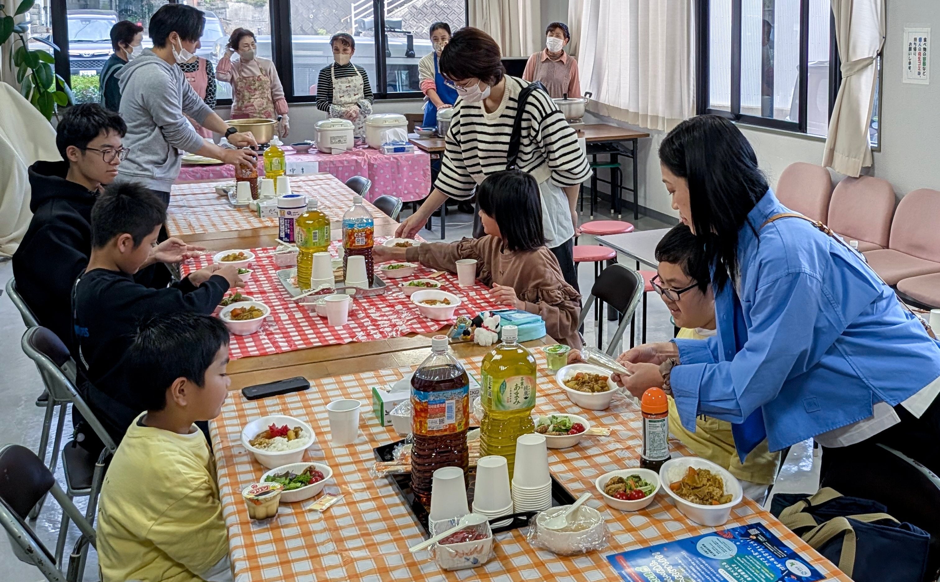 当日は、カレーライスとサラダに加え、地元の海の幸・アイゴの加工品を使ったおかずが提供され、集まったこどもたちの笑顔が広がる、あたたかな食卓となりました。
