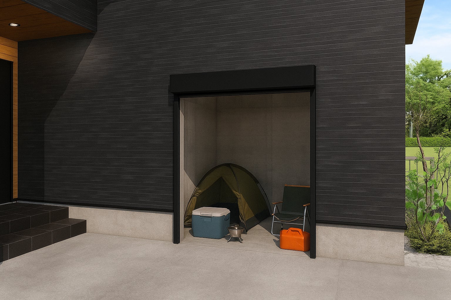 バイクやアウトドア用品の収納に最適なビルトインガレージのある住まい。キッチンを回遊できる家事ラク動線、子ども部屋や来客スペースに活躍するリビング続きの和室など、暮らしやすさを追求した設計が魅力です。