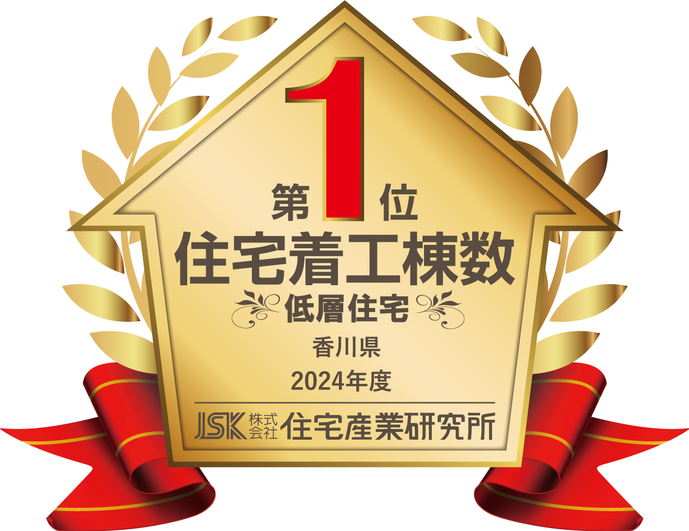 この度、香川県における2024年度の住宅着工棟数第1位※を獲得しました。 本実績は、2024年度に確認申請が許可された物件のうち、2025 年7月末日までに建築計画が確認できた低層住宅総数が対象となるもので、2016年のブランド設立以来初の獲得となります。 これからも、長く安心して暮らしていける住まいをご提案できるよう邁進してまいります。
