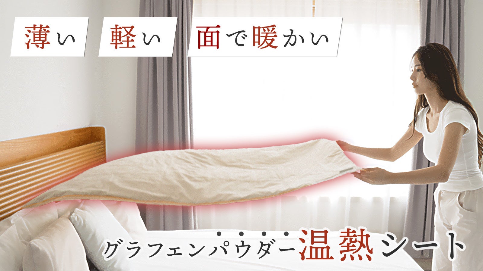 「熱線がなく面で暖かい グラフェンパウダーで温める温熱シート」