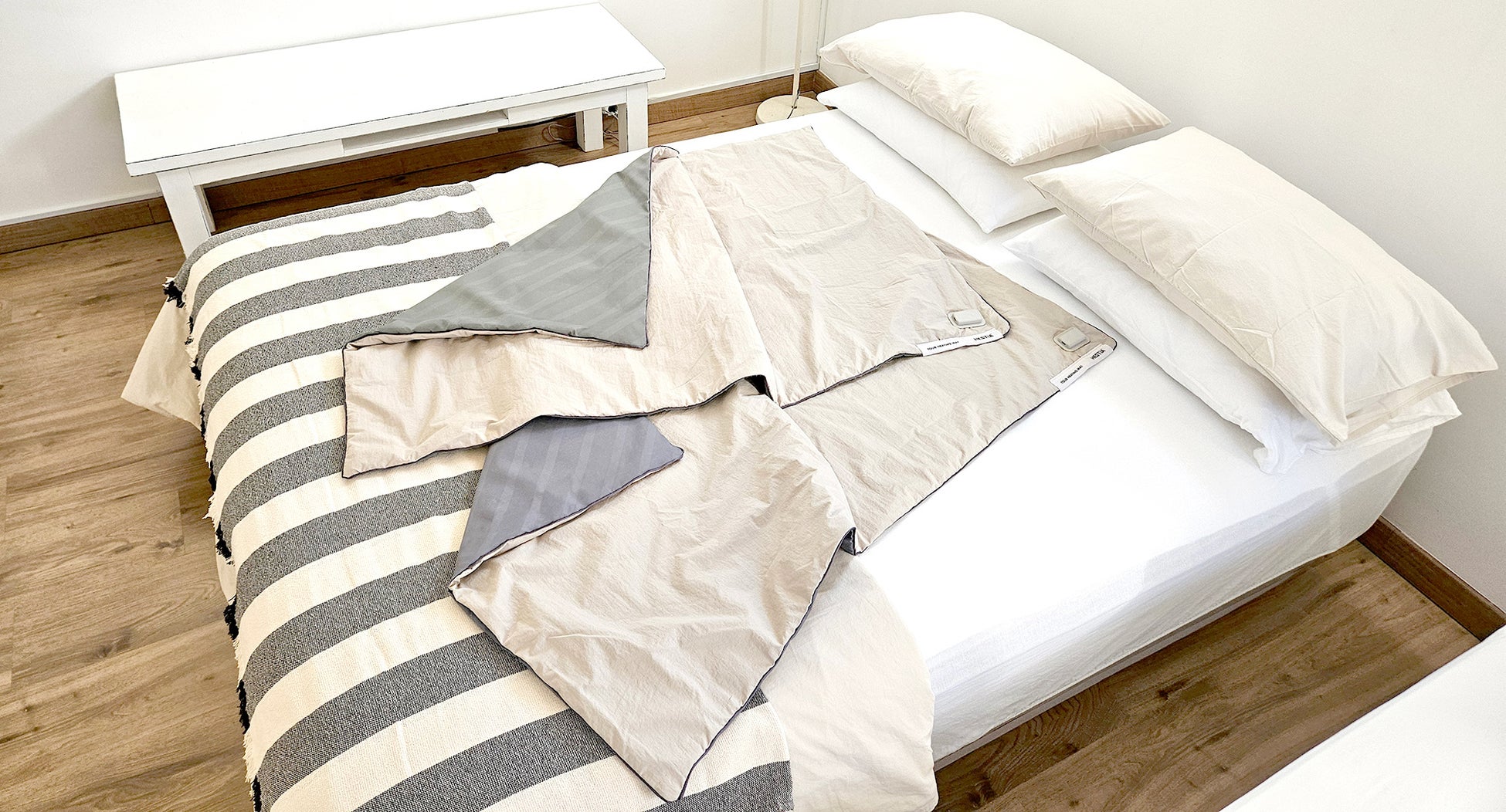 薄くて軽いので寝具に敷いても違和感がなく、寝具の性能を損ないません。