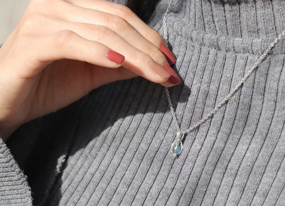 ”2色珠”は、ジュエリーとして身に着けて楽しむことも可能。