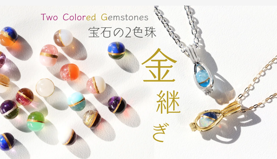 “2色珠”は、30種類の天然石から「金継ぎ」「銀継ぎ」の技術を用いて、