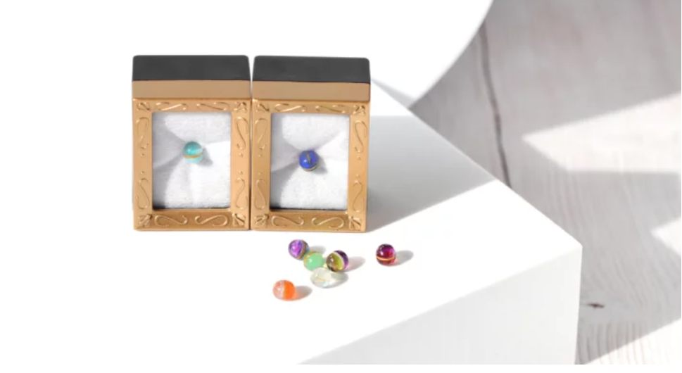 2つの宝石を金継ぎで合わせて、あなただけの特別な宝石を作れるとっておき体験。金継ぎと銀継ぎも選べる、まるでお菓子のようなキュートさと、煌く輝きが美しい宝石の珠が登場。