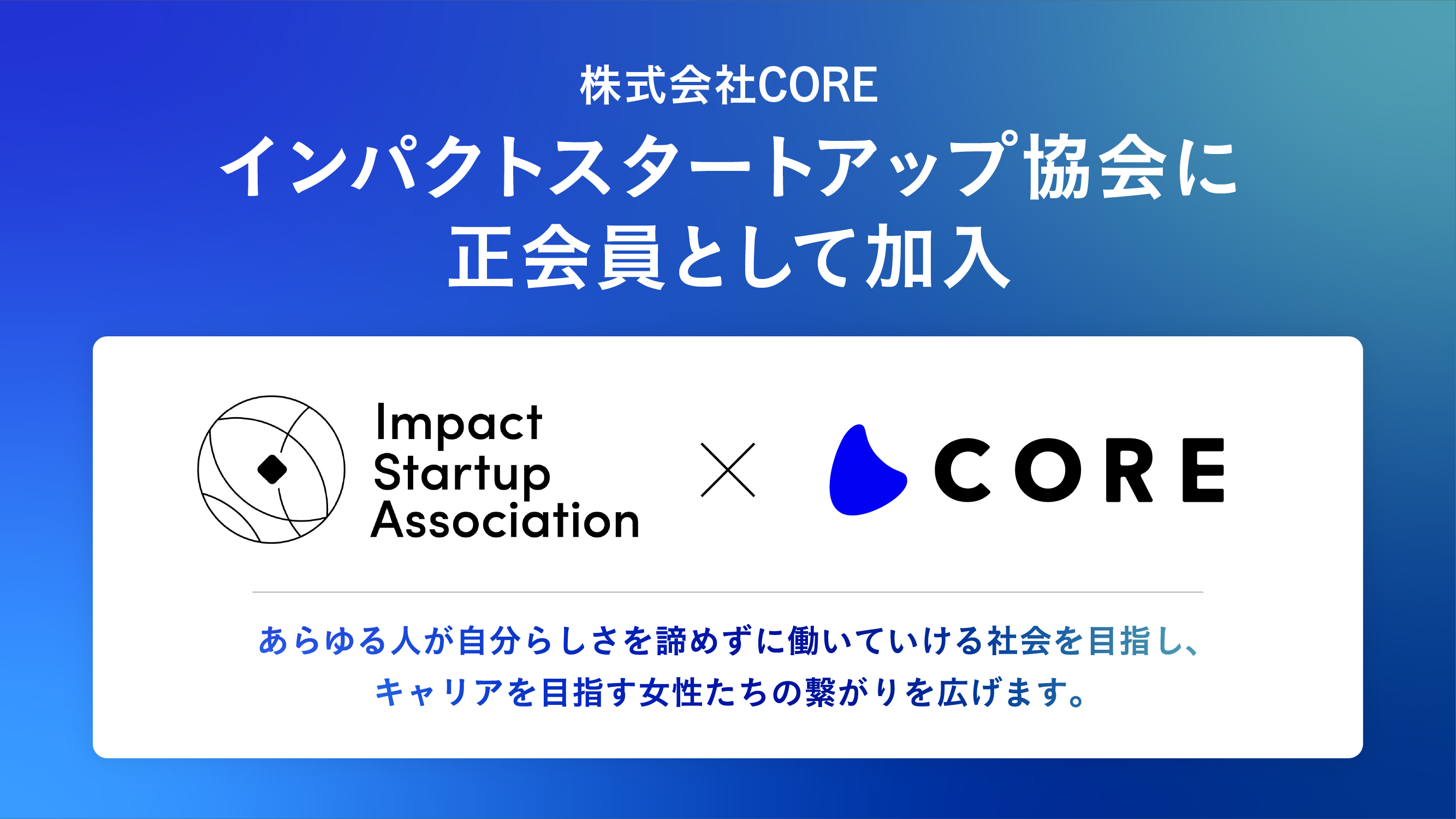 働く女性のためのコミュニティSNS「CORE」を運営する株式会社CORE(本社:東京都港区、代表取締役:尾崎莉緒、以下CORE)は、一般社団法人インパクトスタートアップ協会(Impact Startup Association 以下、「ISA」)に正会員として加盟したことをお知らせいたします。