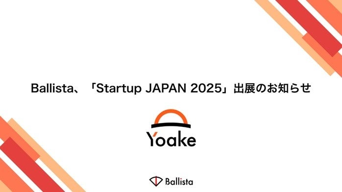 株式会社Ballista(本社:東京都千代田区、代表取締役社長:中川貴登、以下:当社)の提供する事業化支援プラットフォーム「Yoake」が、2025年12月17日(水)・18 日(木)にマイドームおおさかにて開催される、スタートアップ業界 日本最大級の展示会「Startup JAPAN EXPO 2025 in 大阪」に出展いたします。西日本で開催されるイベントへの出展は、サービス開始以来初となります。