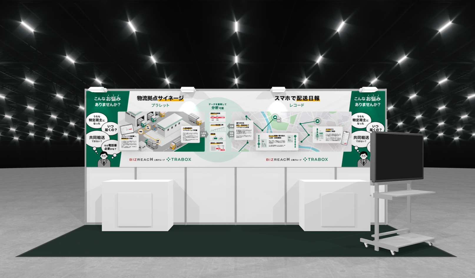 トラボックスは、こうした法令対応のニーズと現場のリアルな課題を解決するため、スマートフォンやタブレットの簡単な操作だけで「荷待ち・荷役時間」を可視化でき、手配したトラックの到着予定を現場のモニター等でリアルタイムに共有できる機能の提供を行っており、より多くの方々にご紹介するべく、本展示会に出展いたします。