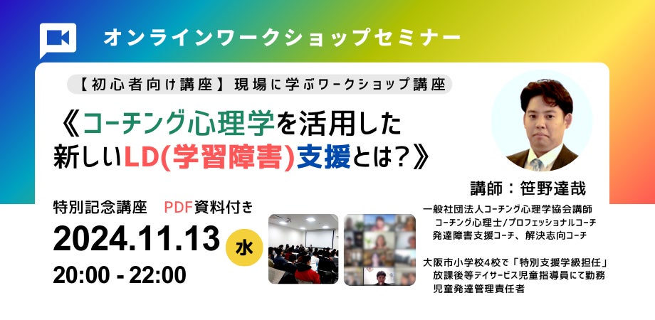 《初心者にもわかる「コーチング心理学」を活用した【LD(学習障害)支援】とは?》2024年11月13日20時~開催!