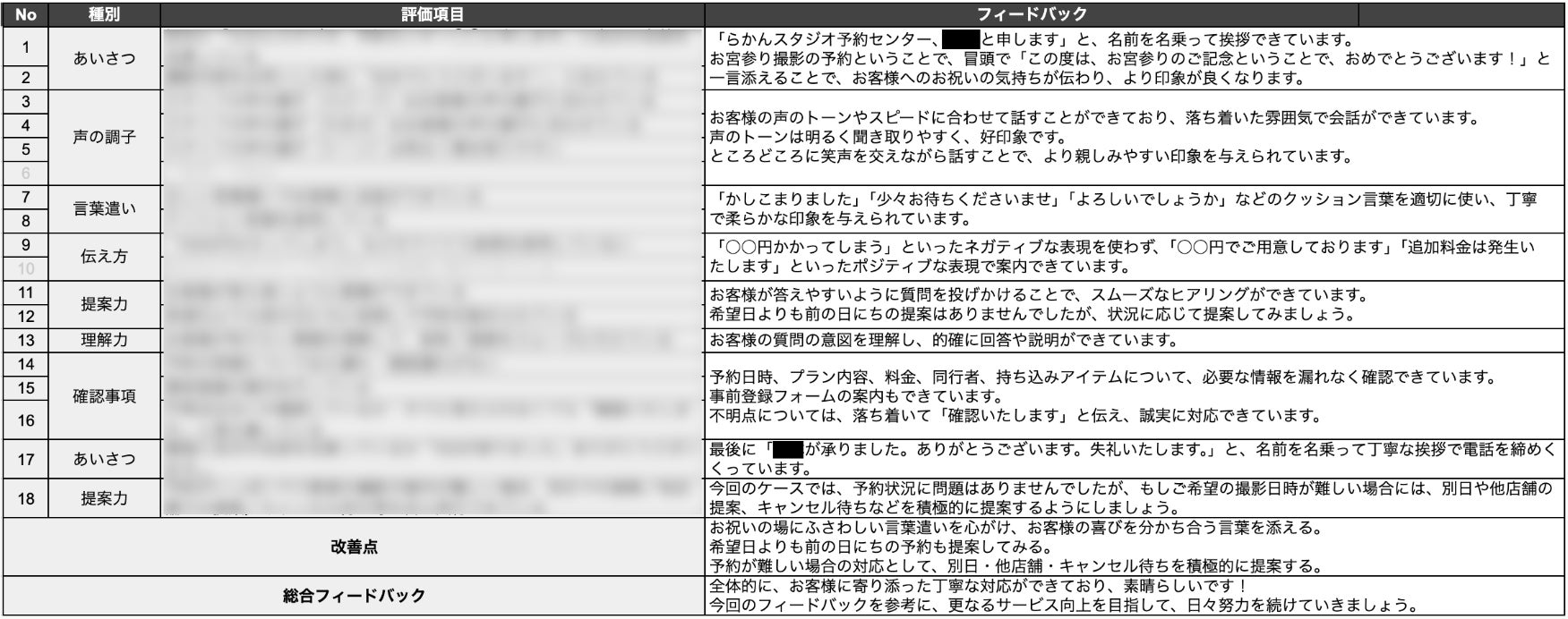 今回のPoCにより、人力での評価と比較してもAIに任せられることが確認されました。これにより、人材不足問題が解消されるだけでなく、フィードバックの提供も可能となり、スタッフの応対品質の向上にも寄与することがわかりました。さらに、このAIシステムはフォトスタジオだけではなく、電話対応が必要なすべての業種においても効果的であることが期待されます。