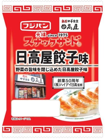 フジパン株式会社(愛知県名古屋市)は、株式会社ハイデイ日高(埼玉県さいたま市)とのコラボレーション商品「スナックサンド 日高屋餃子味」を8月1日から販売致します。株式会社ハイデイ日高は、関東を中心に「熱烈中華食堂日高屋(以下日高屋)」を展開し、2023年2月に創業50周年を迎え、サラリーマンから学生、女性の方まで気軽に立ち寄れる中華食堂として人気を博しています。今回のコラボレーションでは創業50周年記念メニューのひとつとして、フジパンのスナックサンドによる人気定番メニューの餃子をイメージした新製品を約1ヶ月間発売いたします。