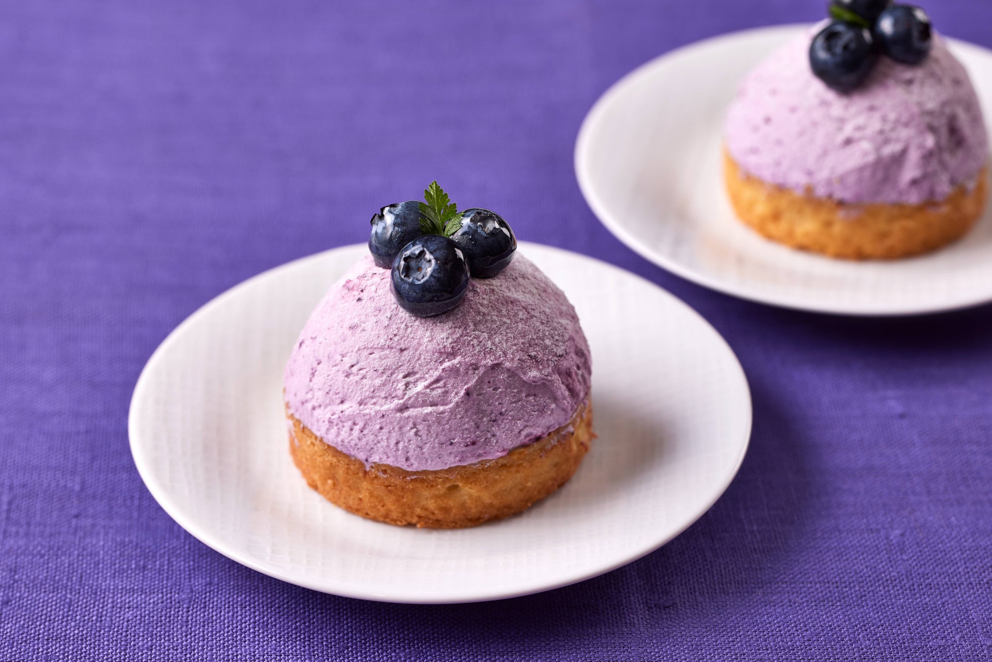 【商品詳細】紫陽花をイメージした淡い紫色のブルーベリータルト。自家製ブルーベリージャムを使ったクリームでフロマージュブランのムースをデコレーションした爽やかな味わいのケーキです。