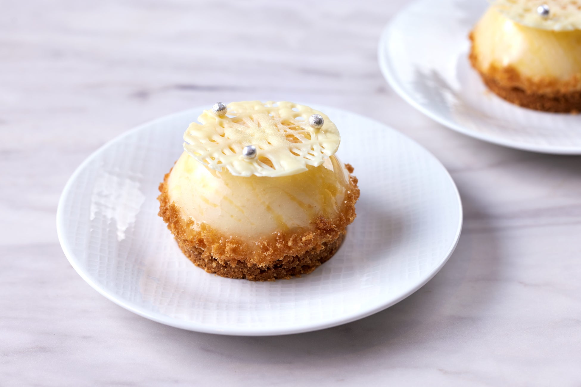 【商品詳細】サクサクのクッキー生地にスポンジ、ライチジュレ、ゆずクリームを重ねライチムースで包んだドームケーキ。ライチの甘みとゆずの酸味が絶妙なすっきり爽やかな味わい。