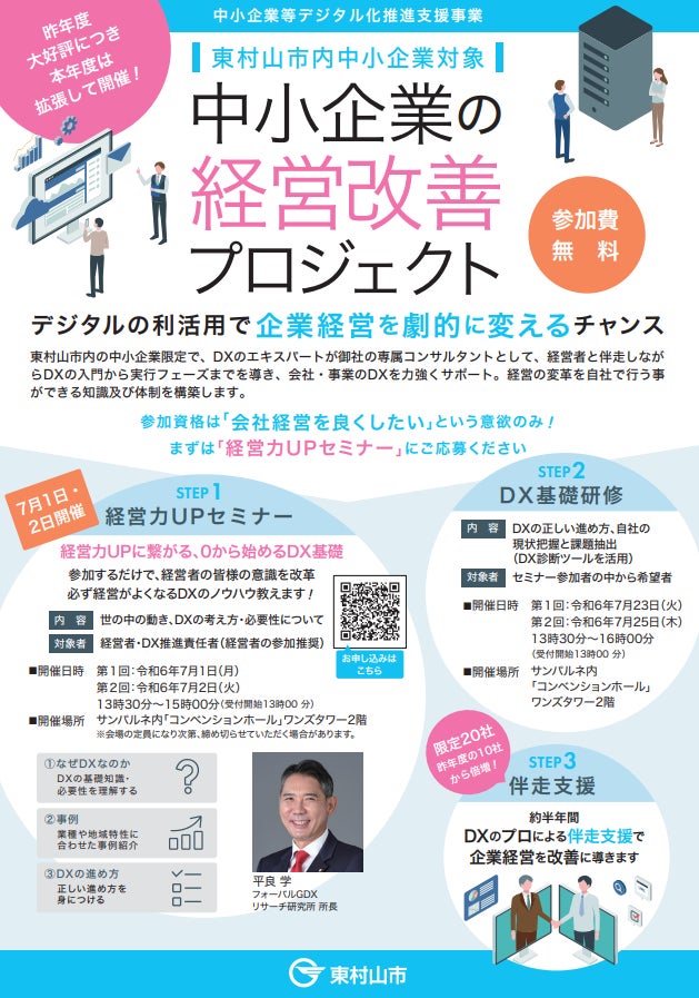 大好評につき、拡張開催!フォーバル GDXリサーチ研究所所長 平良 学 東村山市主催「中小企業の経営改善プロジェクト」に登壇