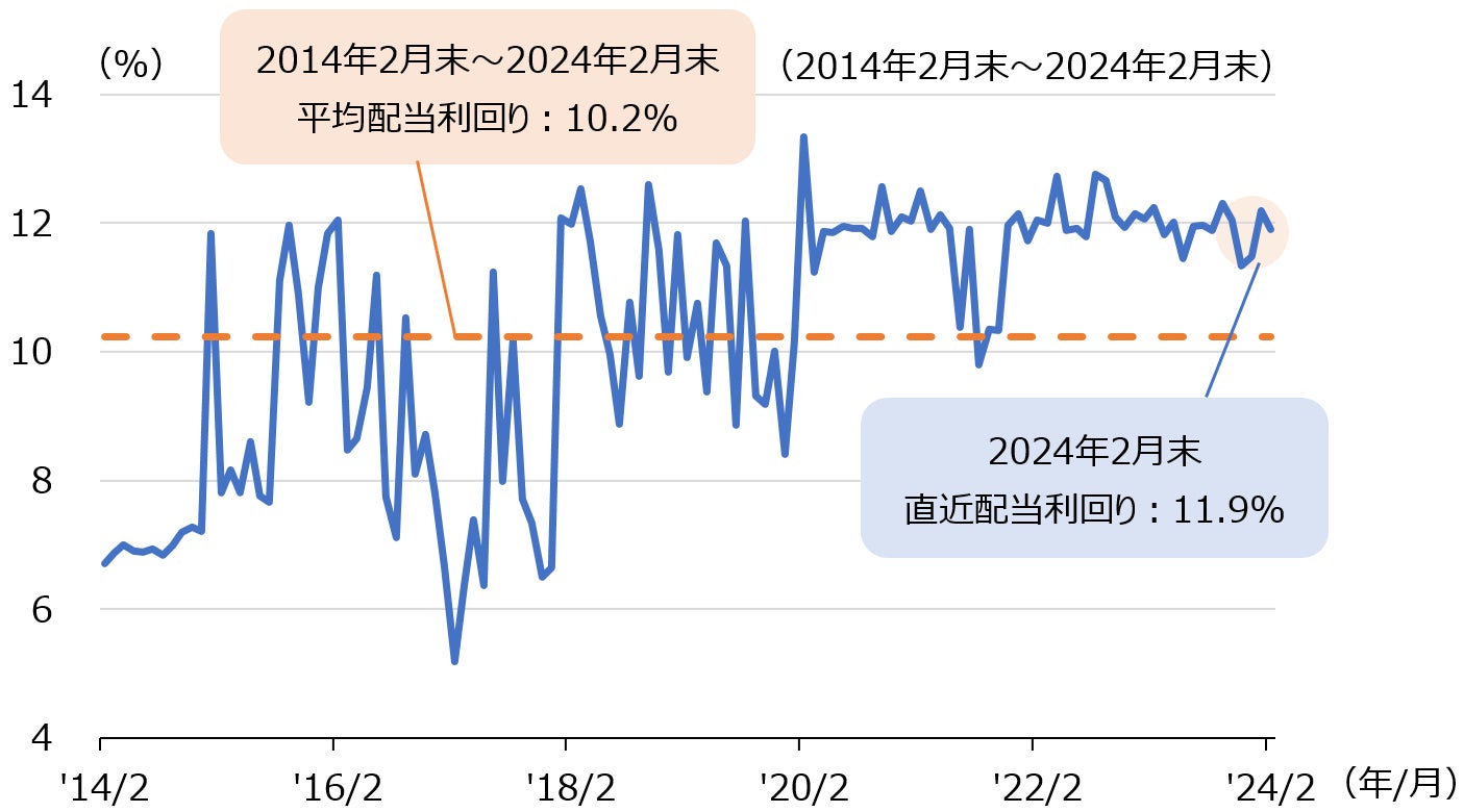 ※直近配当利回りは、直近の配当が継続したと仮定した場合の、年間利回りです。利回りは配当を示し、トータルリターンを示すものではありません。配当利回りは、直近の配当を直近の基準価額で除したものを年換算して算出します。