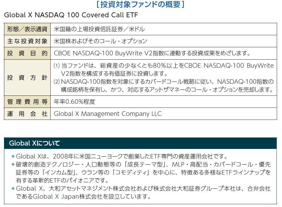 【大和アセット】「一歩先いく NASDAQ-100 毎月カバコ戦略(QYLD)」設定のお知らせ