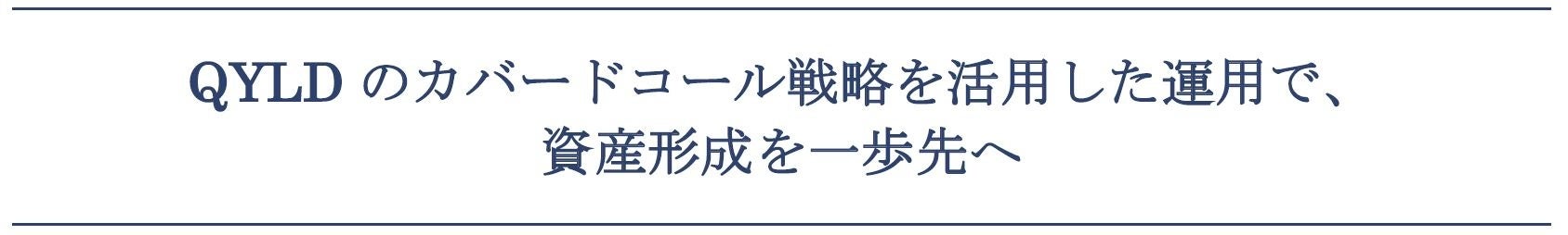 ファンド名にある「QYLD」は、当ファンドが投資対象とする米国上場ETF「Global X NASDAQ 100 Covered Call ETF」のティッカーコードです。公募投資信託の形態として当ファンドを通じて、日本の投資家の皆さまへ提供いたします。