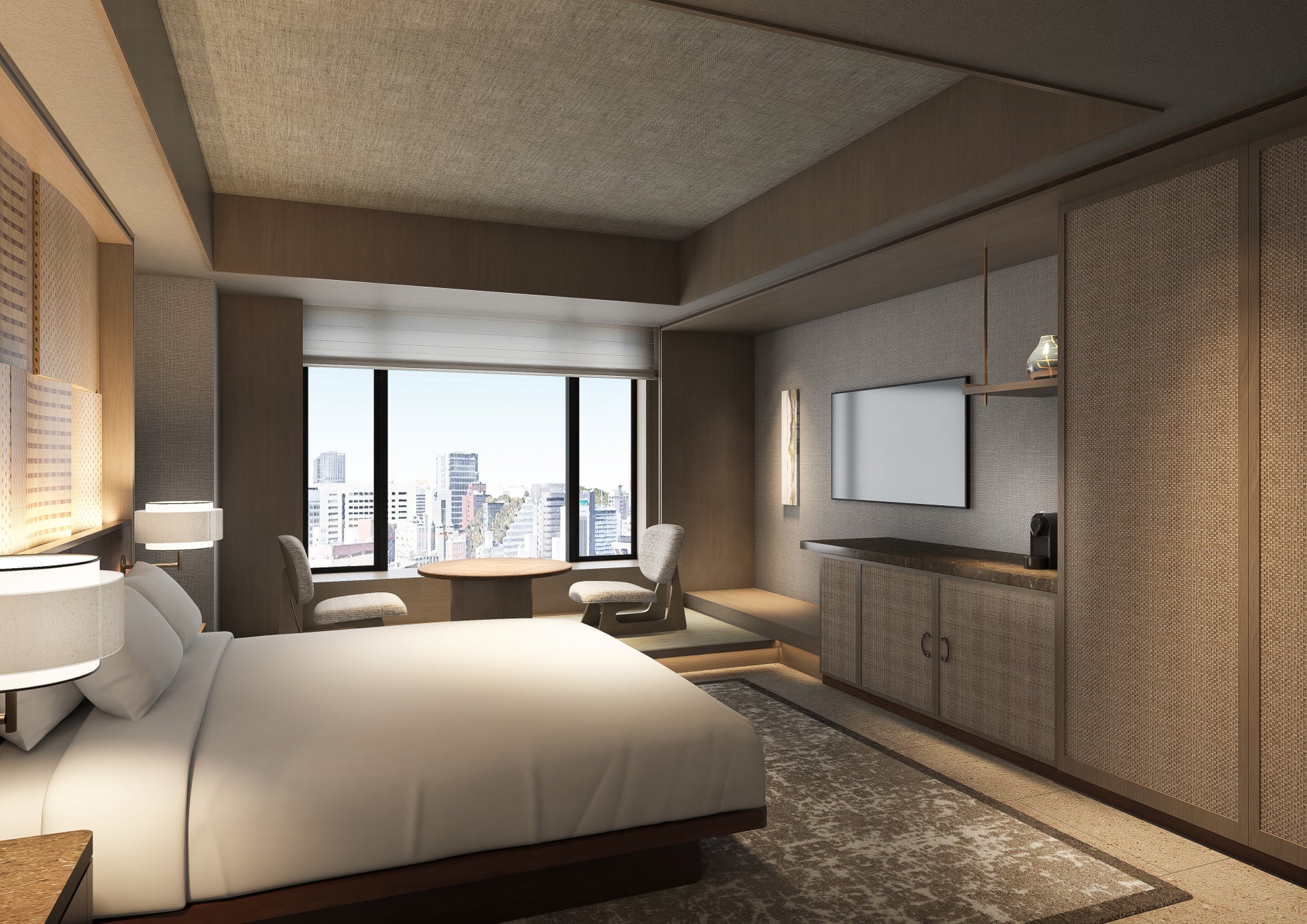 5階のクラブラウンジフロアに誕生する新しい客室のコンセプトは、福岡・博多の特色をちりばめたジャパンモダニズムをベースとした”博多リトリート” 。キングサイズのベッドが入ったプレミアム キングが2室(34㎡)、ワイドキングサイズのベッドが入ったプレミア キングが3室(52㎡)、ワイドキングサイズのベッドルームと独立したリビングスペースを備えるハカタスイート キング(72㎡)が1室の計6室3タイプが加わります。