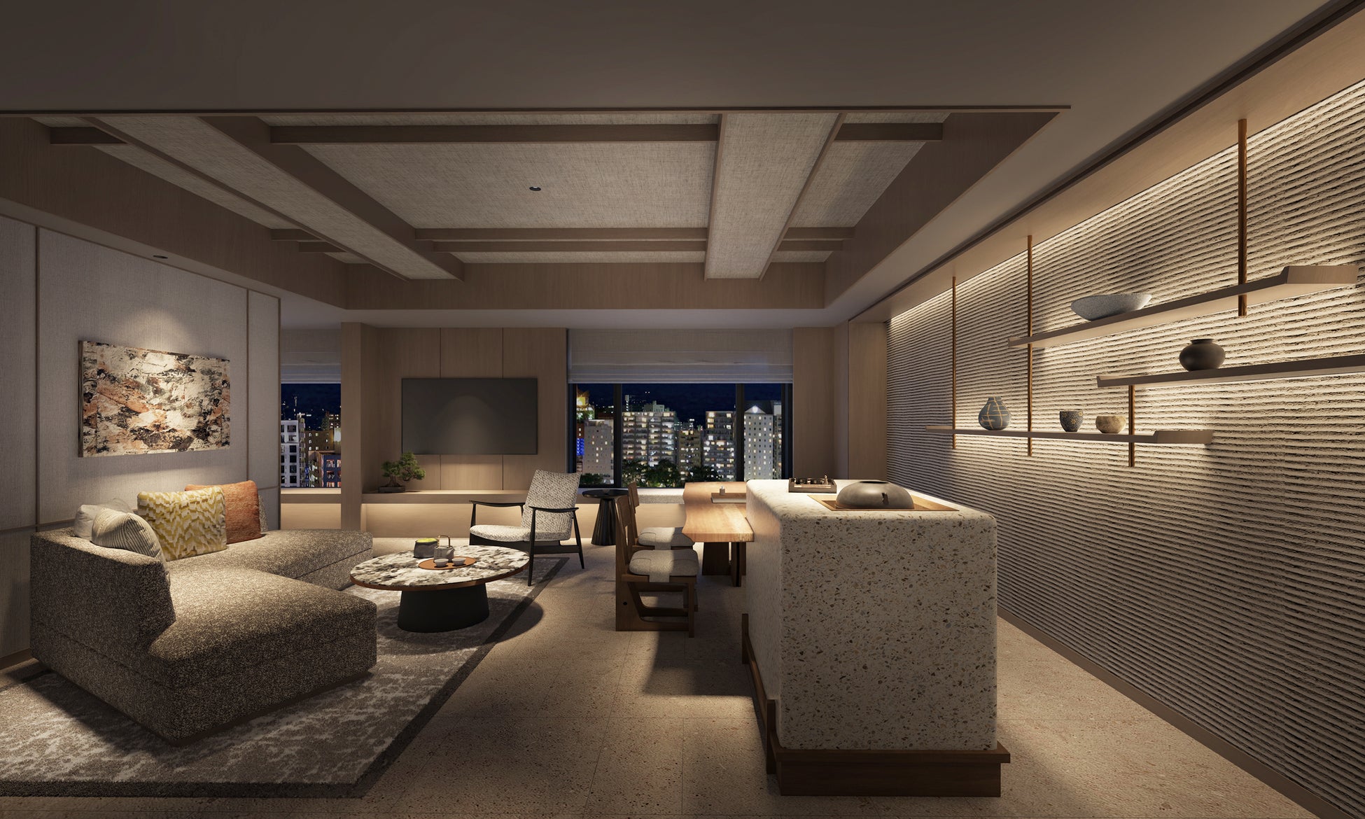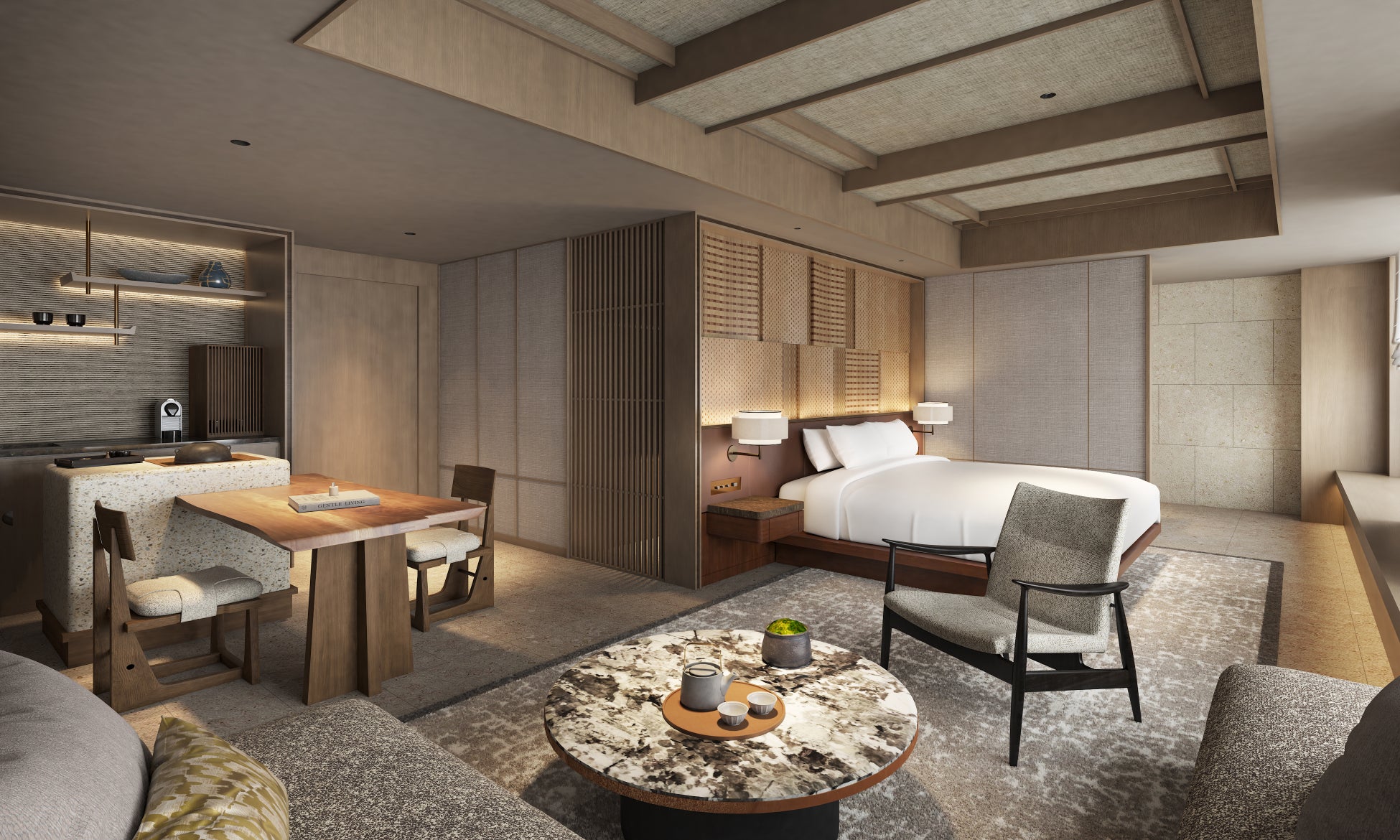 2025年7月18日 グランド ハイアット 福岡のクラブラウンジフロアに新客室が誕生!福岡・博多の特色をちりばめたジャパンモダニズムがコンセプト。抹茶を点てて愉しめる「TEA BAR」を設えた客室も。