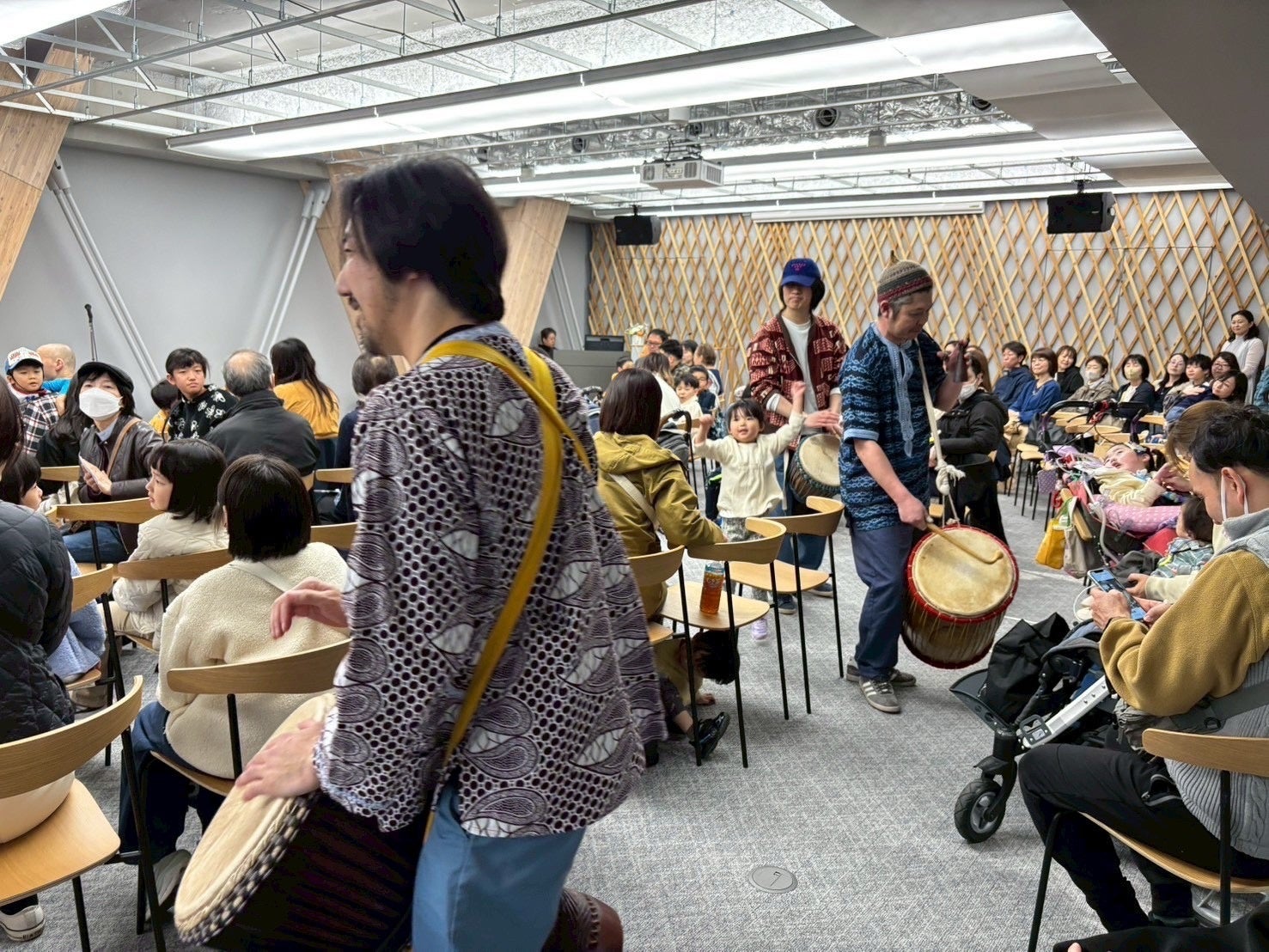 会場内にも太鼓を配置し、みんなでリズムを刻みました。