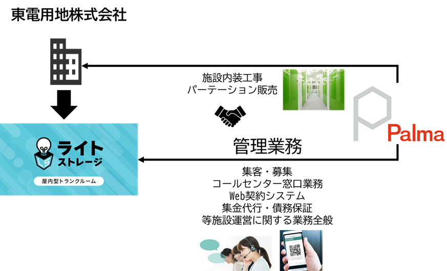 セルフストレージ(トランクルーム等のレンタル収納スペース)に関する運営サービス・施設開発事業を展開する株式会社パルマ(以下「当社」)と、東電用地株式会社(以下「東電用地」)は、東電用地が新規事業として開始するセルフストレージブランド「ライトストレージ」について、セルフストレージ運営の管理受託契約を締結しBPO業務を受託することになりましたので、お知らせいたします。