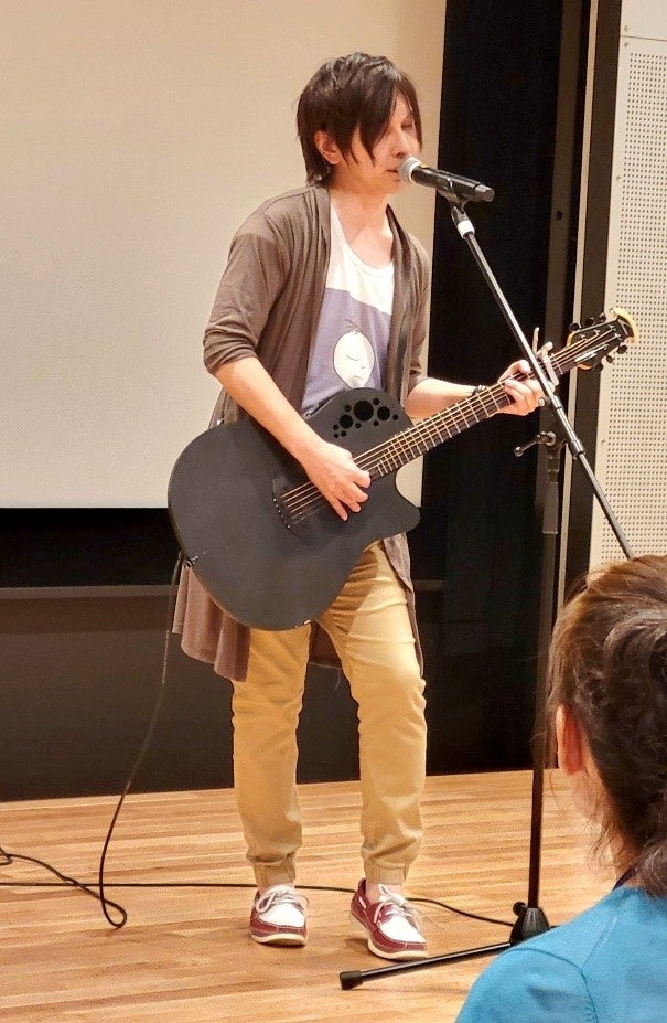 講演の初めと終わりには、自身の体験や当事者の声をもとにして作られた曲の弾き語りが披露され、聴きながら涙を流す参加者もいた。