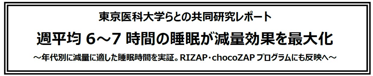 ~年代別に減量に適した睡眠時間を実証。RIZAP・chocoZAPプログラムにも反映へ~