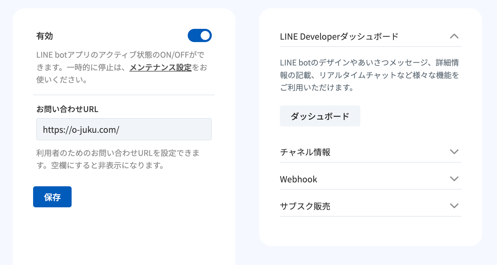 作ったAIは、ダッシュボードからカンタンにLINE botとして導入することが可能です。