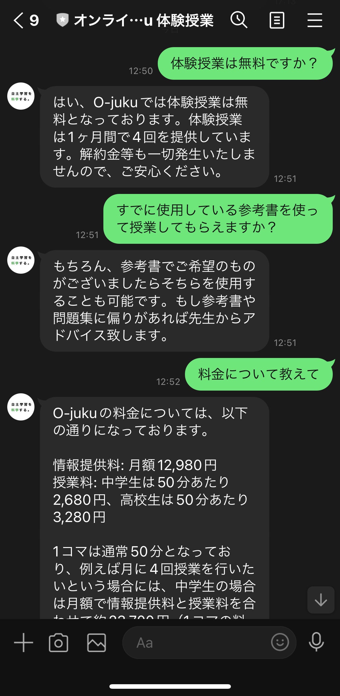 弊社運営のオンライン個別指導O-juku(https://o-juku.com/)の受付公式LINEに、Quup AIを導入しました。