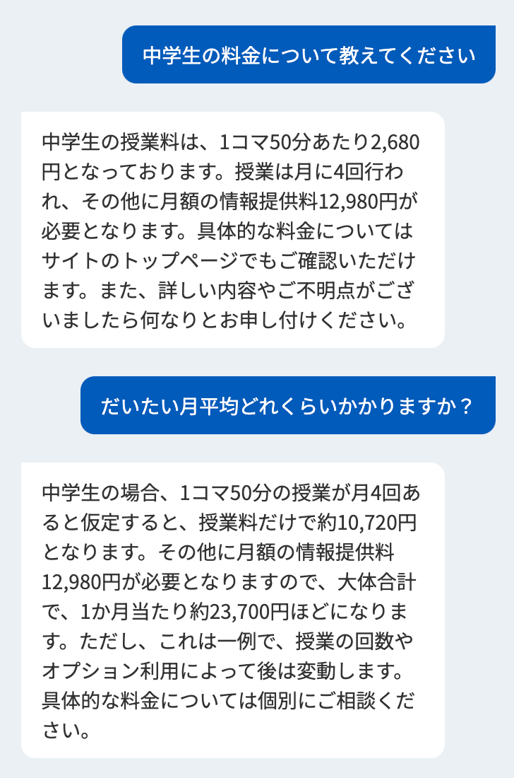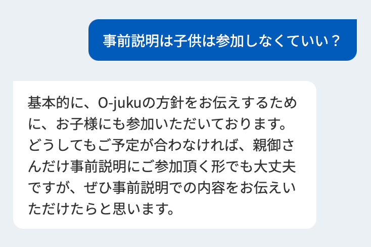 O-jukuについてChatGPTに学習させることで、お客様をスムーズに体験授業へ案内できるようになりました。