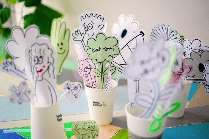 このワークショップでは、ガレリアのイベント会場を彩る加賀美健氏の春をモチーフにしたアートを使って、自分だけの特別なフラワーアレンジメントを作ります。さらには、参加者が考えた“春らしい一言”を加賀美氏自らがその場で直筆で書き上げ、作品にスペシャルな花を添えます。加賀美ファンからお子様までお楽しみいただけるワークショップにぜひご参加ください。
