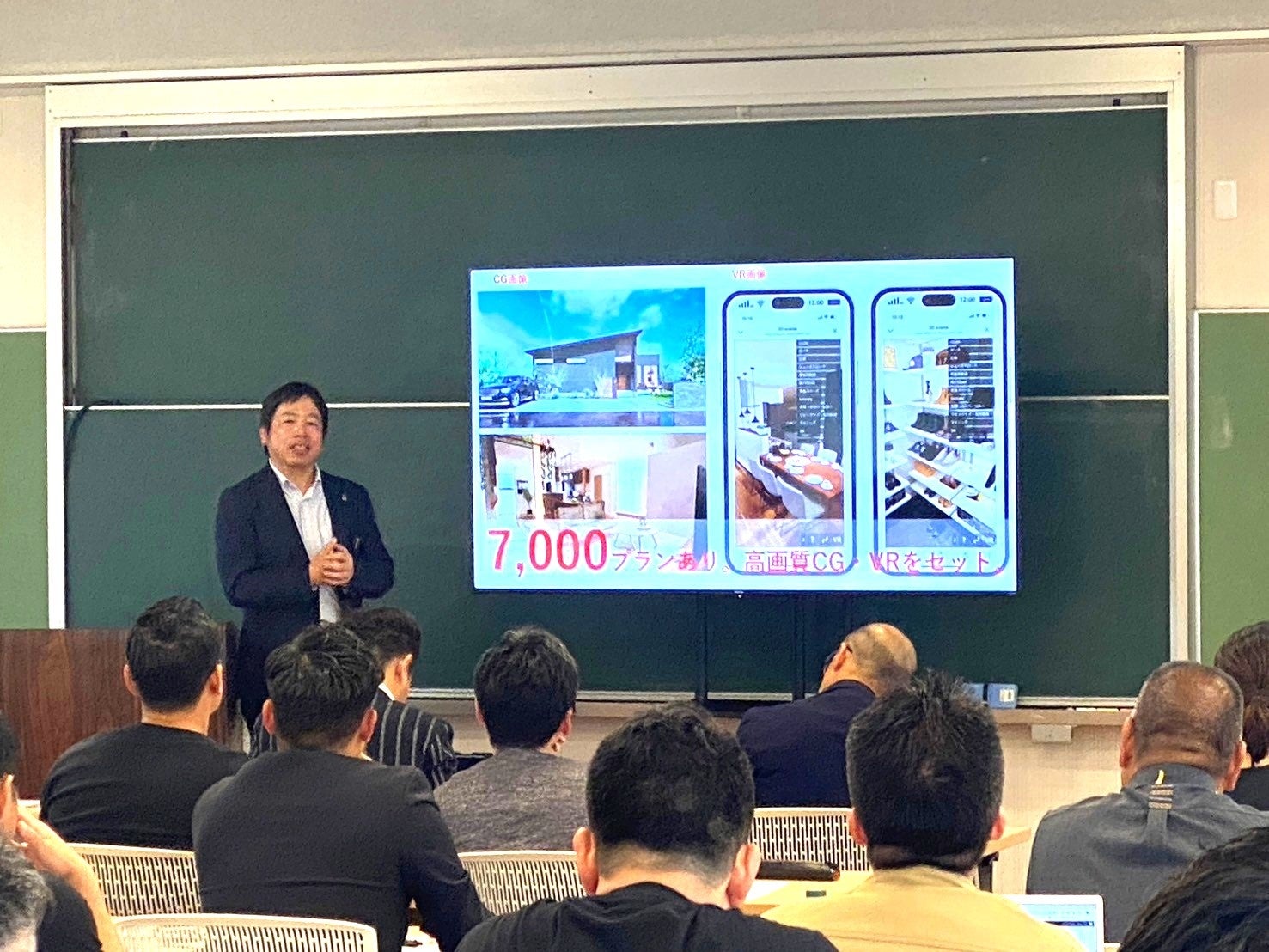 その後、「Lib Work Lab」で実施した分科会では、異業種とのコラボレーションや、ネット上のVR展示場の開設、AIやChatGPTの導入といった取り組みを推進することで、地方の工務店であることや人材不足といった課題を解決し、差別化を実現する仕組みを構築した手法を解説。更に、こうしたノウハウを住宅メーカーに提供する事業を紹介しました。最後に瀬口力社長が、152万再生や327万再生に上った動画配信の具体例を示しつつ、デジタル集客による拡大や、従来のフランチャイズ事業の課題とそれを克服する事業戦略の構築を図ったコラボ事業の取り組み、採用活動での差別化、3Dプリンターハウスの事業化によって目指すところなどを本音を交えながら振り返りつつ、参加者からの質問にも回答しました。