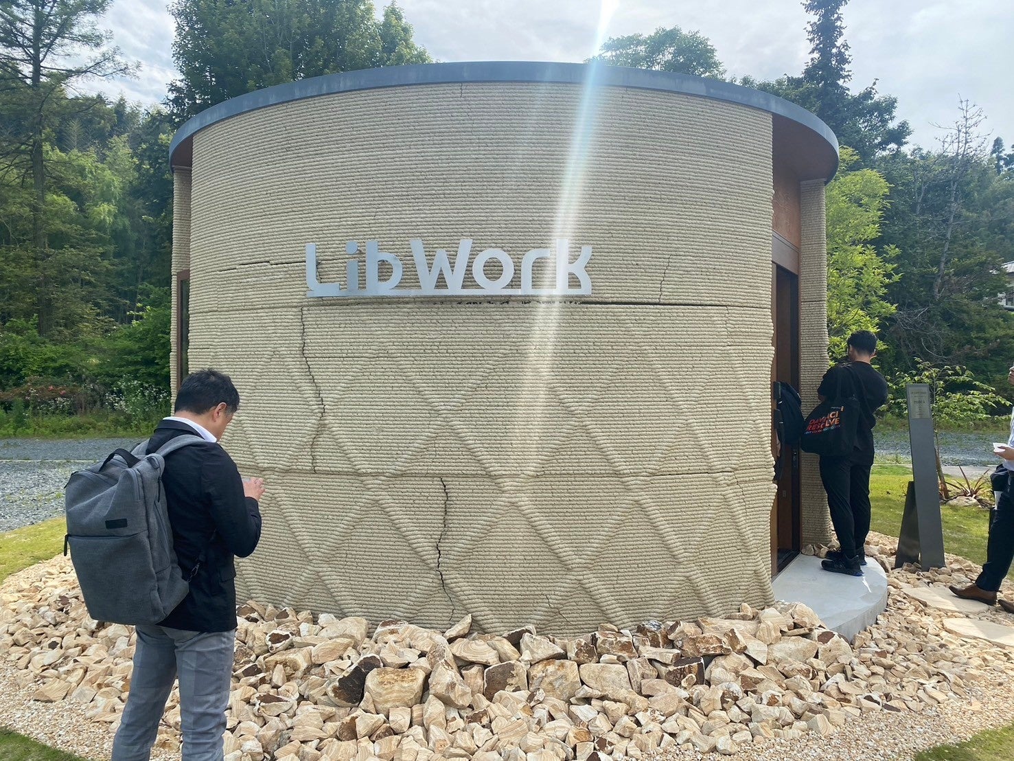 当日は、ライフスタイルブランド「niko and...」や「Afternoon Tea」との異業種コラボレーションによるモデルハウスや、国内初となる、土を主原料とした3Dプリンターモデルハウス「Lib Earth House」、廃校をリニューアルしたセカンドオフィス「Lib Work Lab」を見学。新規来場者数を4倍に伸ばしたモデルハウスや、2025年度の発売を計画している3Dプリンターによる住宅を、デザインコンセプトや具体的な構造や仕様、集客につなげる工夫について、現場スタッフから詳細を聞きつつ、直接確認しました。
