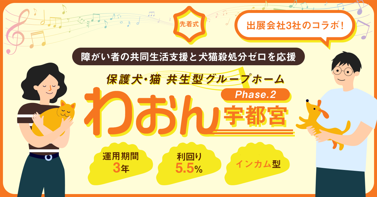 【応援型不動産クラファン利回りくん】9月5日(火)より「保護犬・猫共生型グループホーム『わおん宇都宮』phase.2」の募集を開始いたします!