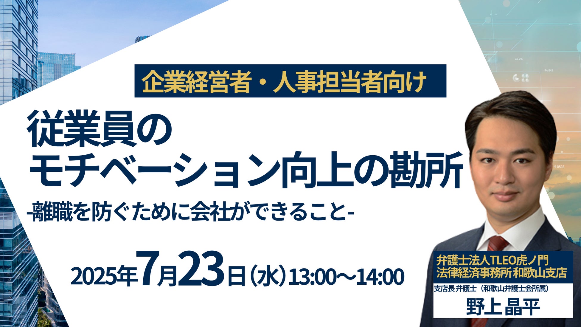 無料・オンラインセミナー「従業員のモチベーション向上の勘所 --離職を防ぐために会社ができること--」を7月23日(水)に開催!