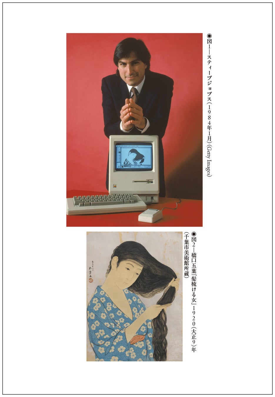 映像には、1984年1月30日、ステージに姿を現したスティーブ・ジョブズがいた。ただ、僕の視線が集中したのは、ジョブズではなく、スクリーンに映し出された1枚の絵だった。数秒現れたのは、流れるような黒髪をくしでとかす浴衣姿の妖艶な日本人女性。その絵は、「新版画」と呼ばれる日本の木版画をスキャンしたものだった。