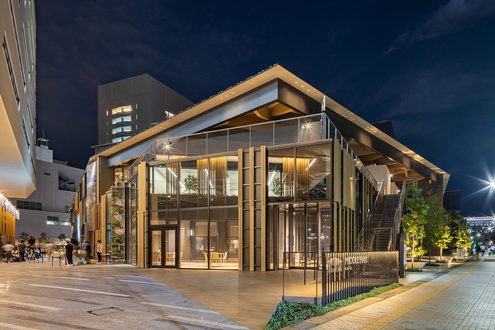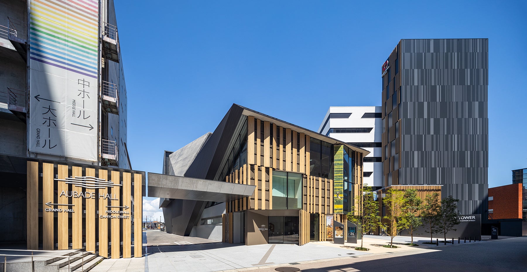 中ホールは2023年3月に竣工しましたが、民間施設が2024年3月竣工となり、商業施設を含め全体のオープンは2024年7月となりました。今回の富山県建築文化賞はホールを対象として応募し、優秀賞の受賞にあたっては「景観・全体構成・空間演出・建築技術等すべてにおいて高いレベルの公共建築」と評価して頂きました。これも様々な方々とのすばらしい協働によるものであり、関係者の皆様には改めて深く感謝申し上げます。