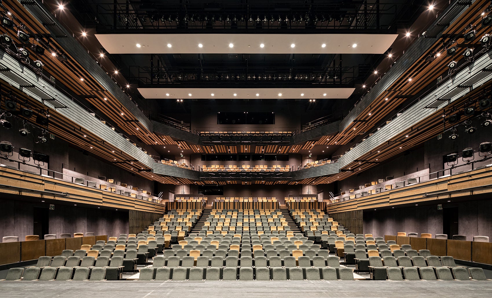 舞台と客席の一体感を生み出す多層客席の中ホールを実現