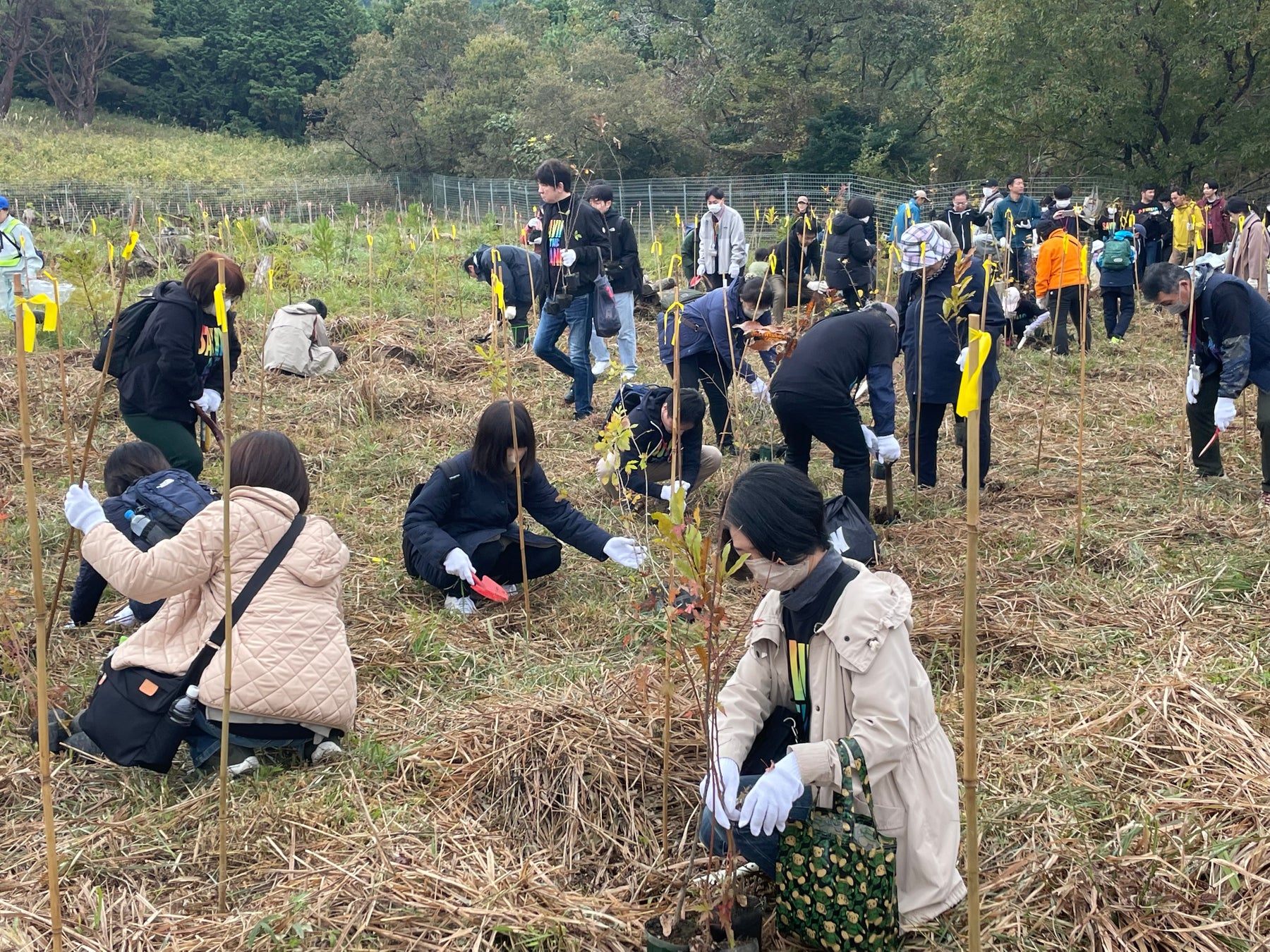 2022年10月、松くい虫などで枯れたアカマツの伐採跡地に、広葉樹を植え里山に戻すことを目的に、クヌギ、コナラ、アカマツ等2,200本の植樹を実施し、2023年11月に1,000本の植樹を実施しました。