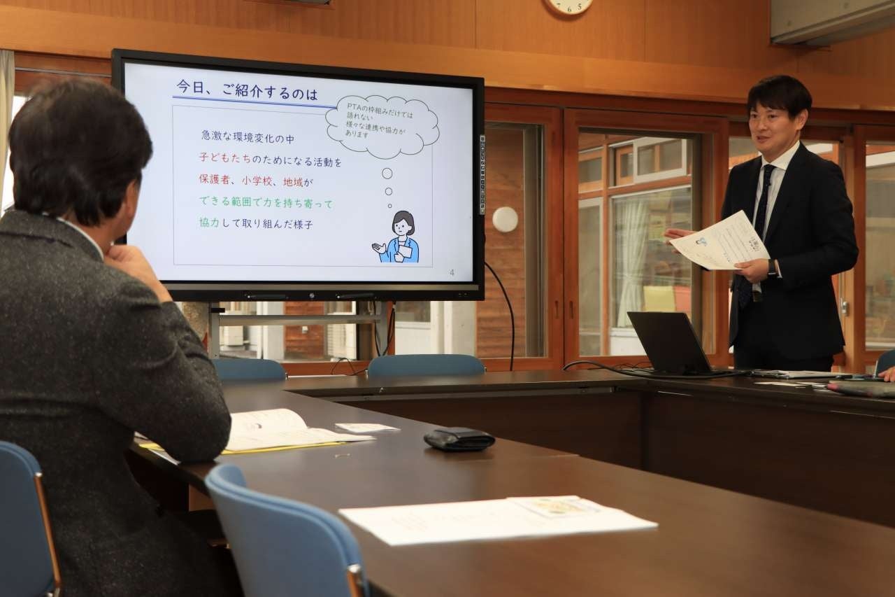 南小学校育友会(PTA)は、令和5年度日本PTA全国協議会の会長表彰を受けました。これに伴い、令和5年11月29日(水)、南小学校に田中明高山市長を迎え、表彰に至るまでの経緯や、学校、保護者、地域全体が子どもたちのために協力して実施した活動や取り組みへの想いを伝えました。