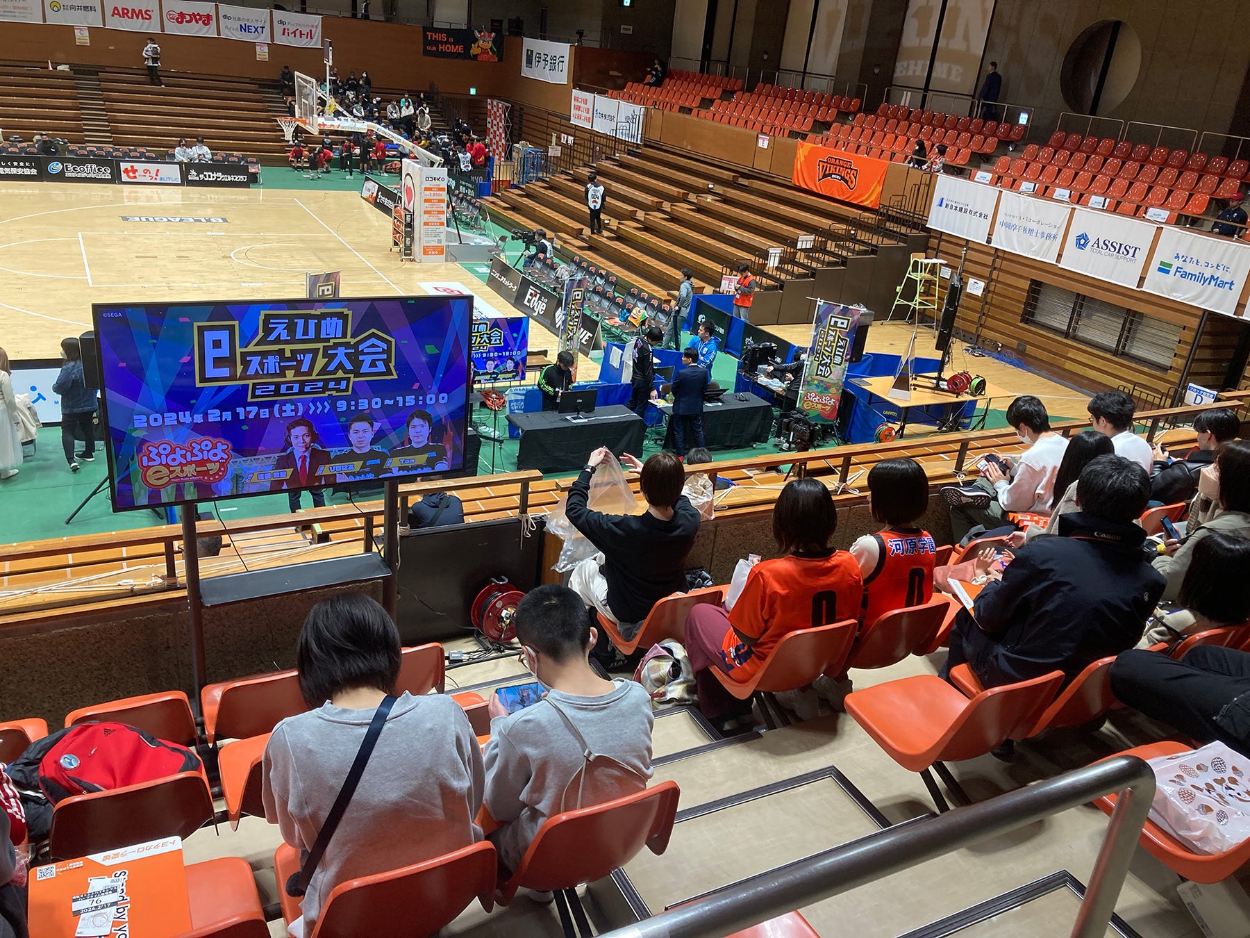 愛媛県のプロバスケットボールチーム「愛媛オレンジバイキングス」のメインアリーナである体育館に場所を移して、「ぽす選手」と「れみぃさん選手」の決勝戦が行われました。