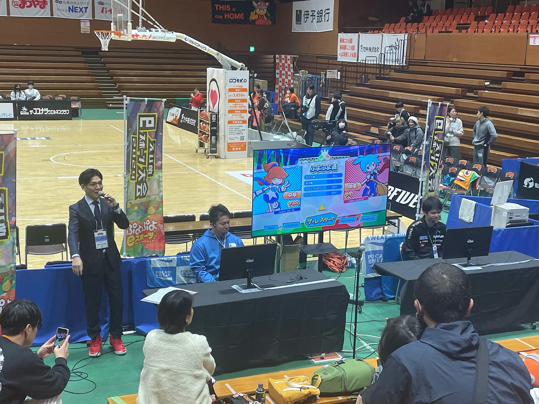 愛媛オレンジバイキングスの関係者とぷよぷよプロプレイヤーとのエキシビションマッチでは、愛媛オレンジバイキングスのファンも大きな声援を送るなど、会場は大いに盛り上がりを見せました。