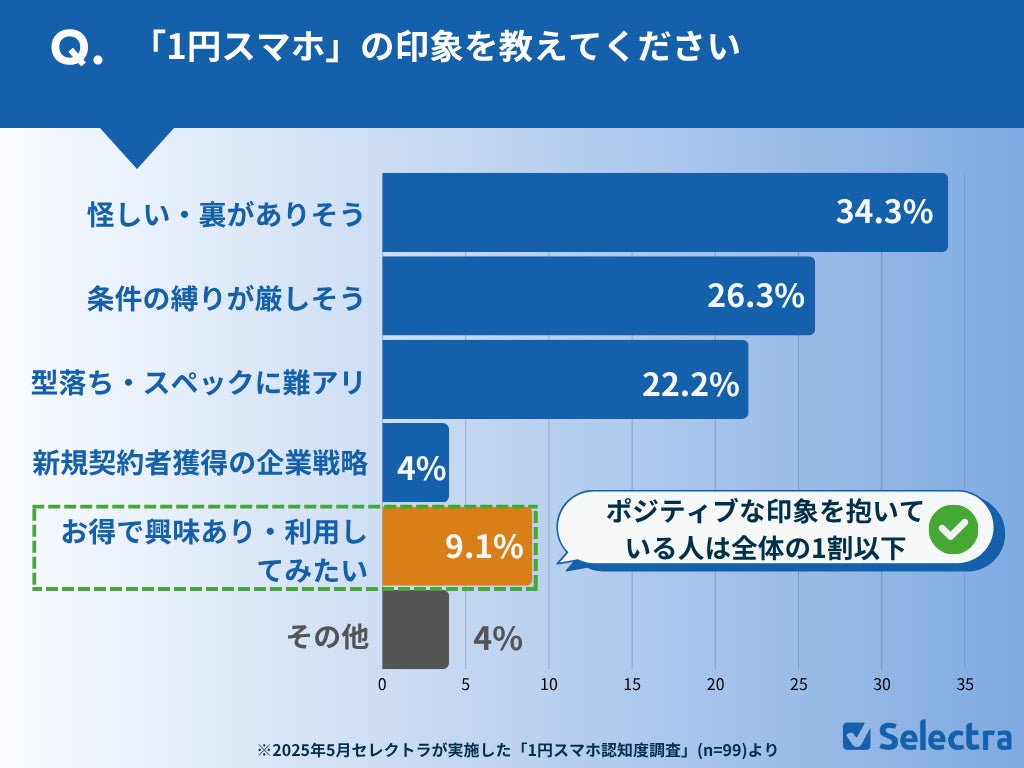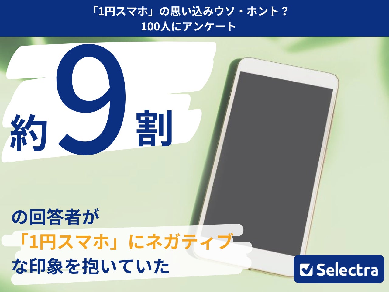 【セレクトラ独自調査】「1円スマホ」認知度アンケート | 9割の回答者が「1円スマホ」にネガティブな印象を抱いていた