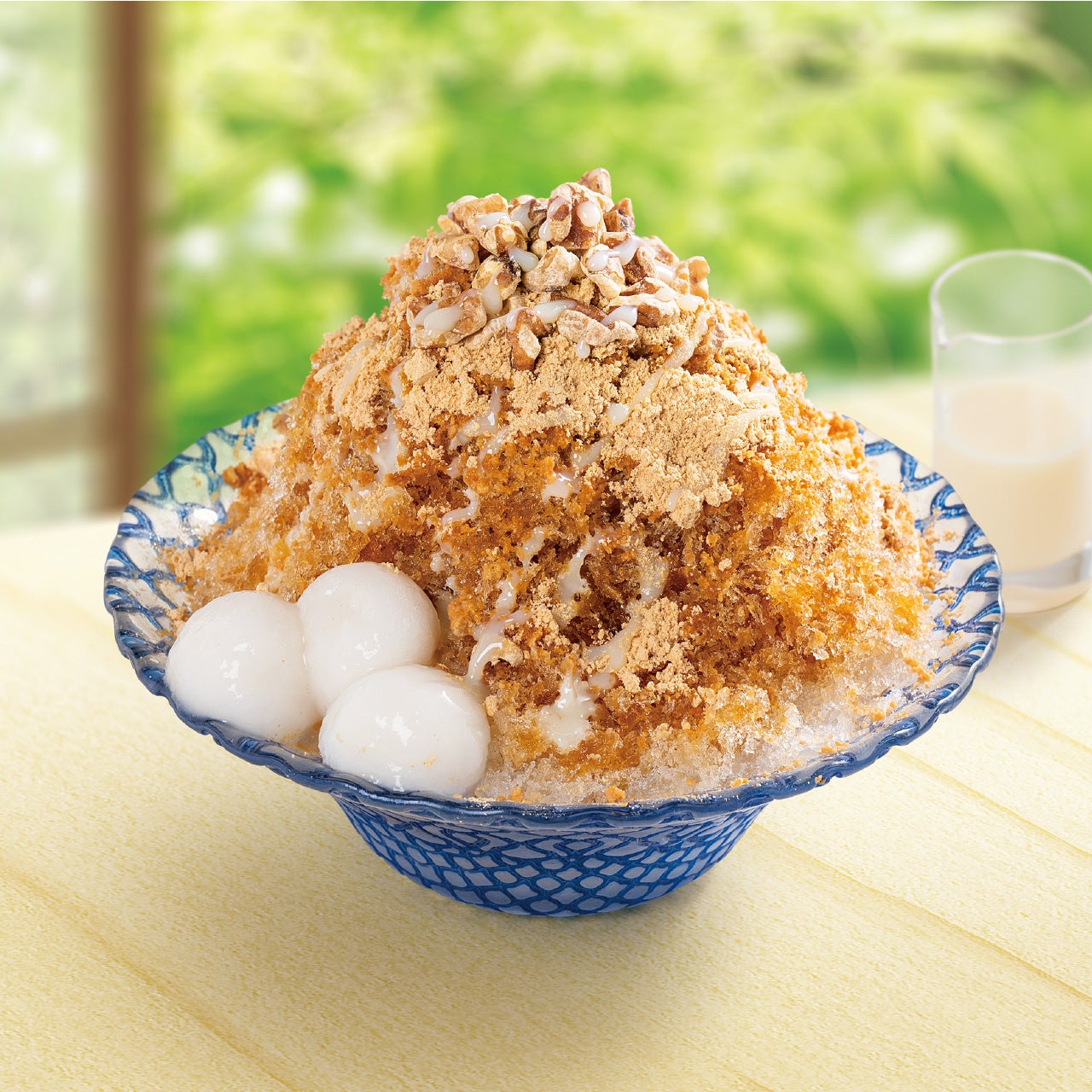 風味豊かなきなこ、コクのある上品な甘さの黒蜜に香ばしいくるみをトッピング。